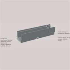 Caniveau en béton allégé, destiné à la collecte et à l’évacuation des eaux pluviales. Ils ont une peau de surface lisse qui favorise l’écoulement.