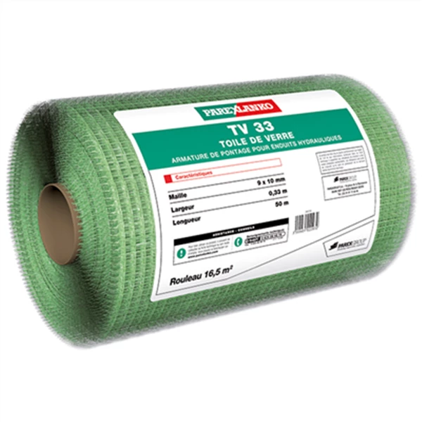 La toile de verre TV33 est une armature souple en fibres de verre traitée anti alcalis. Elle est spécialement étudiée pour renforcer les enduits hydrauliques et éviter les micro fissures pouvant apparaître avec le temps.